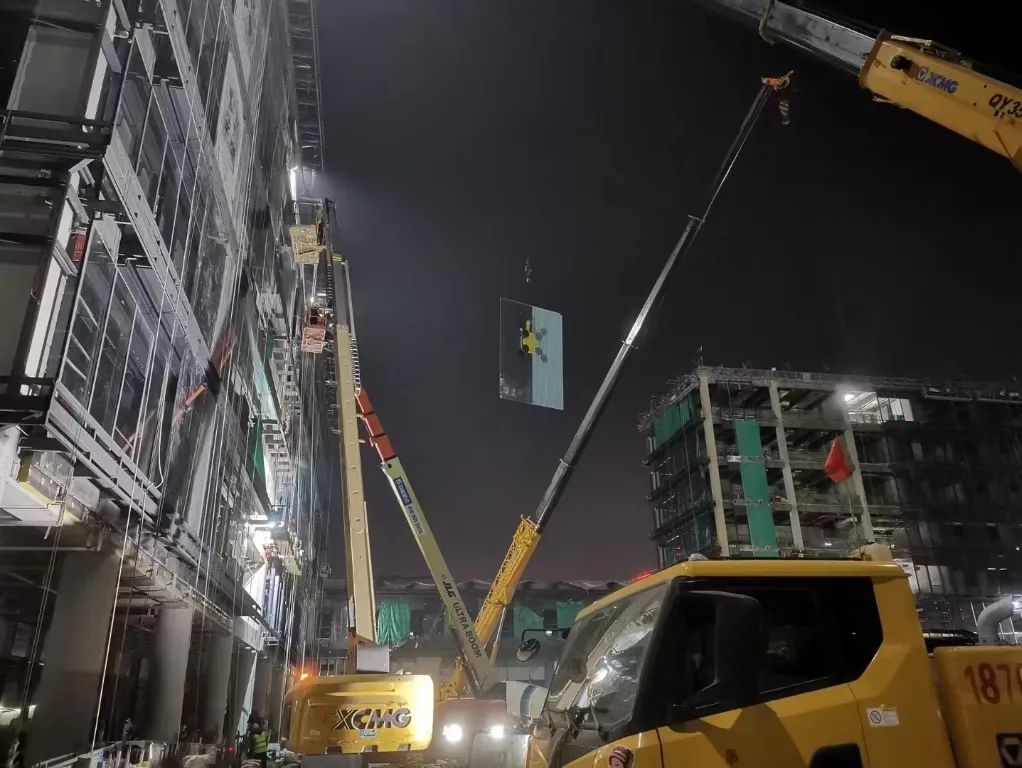 2022年7月14日接到進(jìn)場通知,公司領(lǐng)導(dǎo)高度重視,時(shí)間緊,任務(wù)重,工藝要求非常高,公司領(lǐng)導(dǎo)班子牽頭統(tǒng)籌部署,迅速組織強(qiáng)有力的隊(duì)伍進(jìn)場,管理團(tuán)隊(duì)當(dāng)天下午16點(diǎn)進(jìn)入工地對接,晚19點(diǎn)就組織了27臺施工吊籃入場、連夜搭設(shè)。展開了一場與時(shí)間賽跑的工期部署。翔遠(yuǎn)團(tuán)隊(duì)在董事長董總的帶領(lǐng)及影響下,一直都是一支敢打硬仗的隊(duì)伍,其疾如風(fēng),其徐如林,不動如山,動如雷霆是我們翔遠(yuǎn)人干事的作風(fēng)。